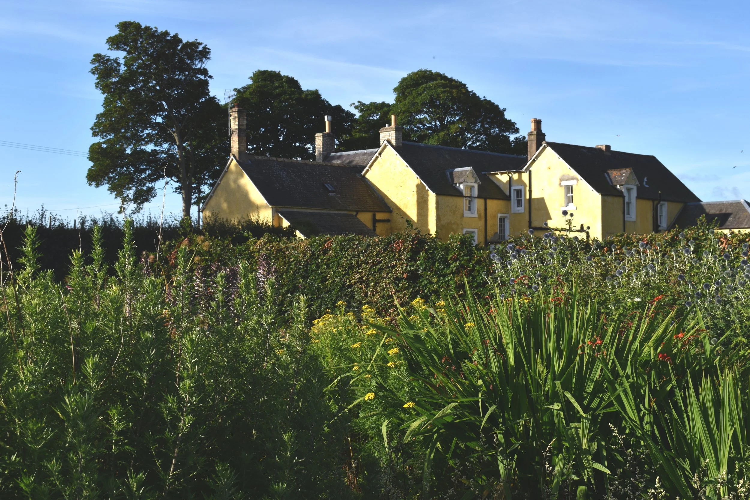 Turn off the A1 at Grantshouse, onto the A6112 signposted Duns. Cross the railway bridge and immediately turn right onto a single track road signposted Butterdean and Quixwood. Continue for three miles until you come to a T junction. Turn right and park on the gravel at the front of the house.